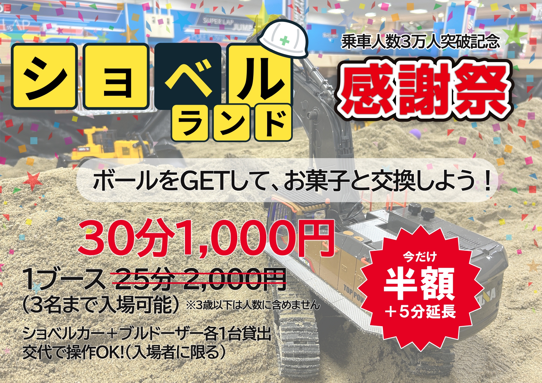 ショベルランド半額+5分延長! 乗車人数3万人突破記念大感謝祭