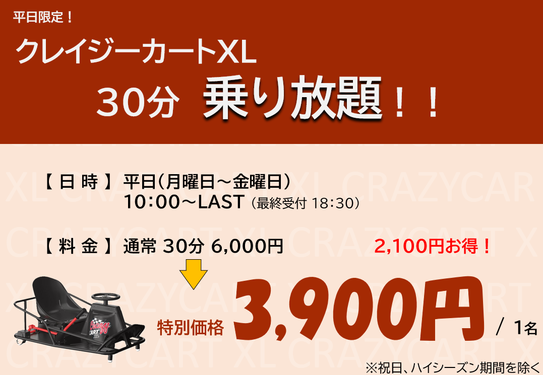 ➂クレイジーカートXL学割【900円】