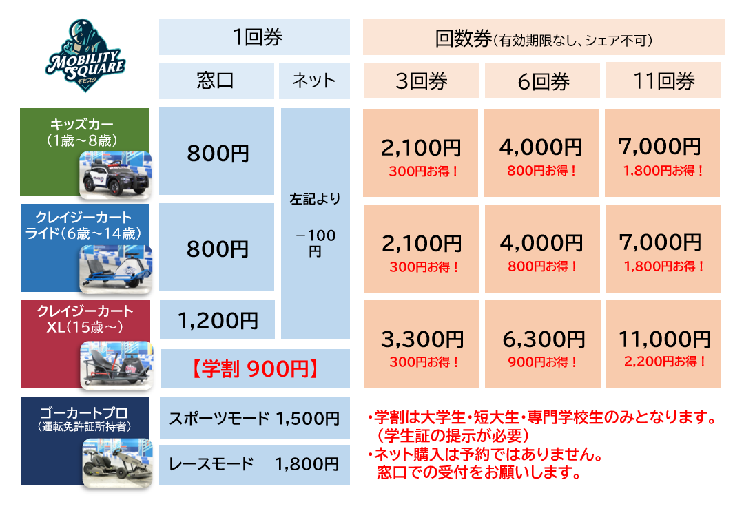 《改定後》6歳~14歳 6歳のお子様もライドに乗ることが可能になりました!!